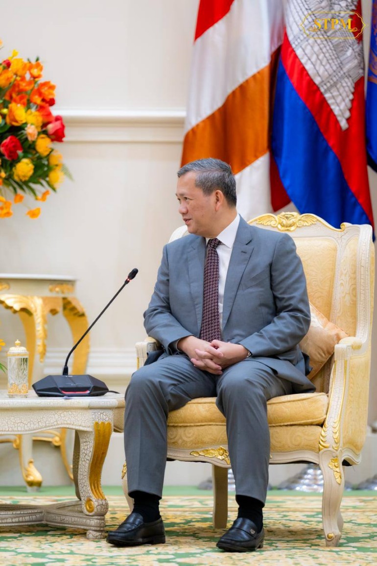 នាព្រឹកថ្ងៃទី៩ ខែកុម្ភៈ ឆ្នាំ២០២៦ សម្ដេចមហាបវរធិបតី ហ៊ុន ម៉ាណែត នាយករដ្ឋមន្ត្រី នៃព្រះរាជាណាចក្រកម្ពុជា បានអនុញ្ញាតឱ្យលោកសាស្ត្រាចារ្យ តេតស៊ូយ៉ា វ៉ាតាណាបេ (Tetsuya WATANABE) ប្រធានវិទ្យាស្ថានស្រាវជ្រាវសេដ្ឋកិច្ចសម្រាប់កិច្ចការអាស៊ាន និងអាស៊ីបូព៌ា (ERIA) ចូលជួបសម្ដែងការគួរសម និងពិភាក្សាការងារ នៅវិមានសន្ដិភាព។